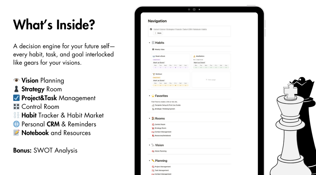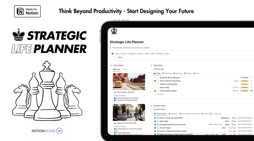 ♟️ Introducing the Strategic Life Planner, a Notion-template that shifts your focus from endless to-do lists to meaningful, long-term achievements by forcing you to think.